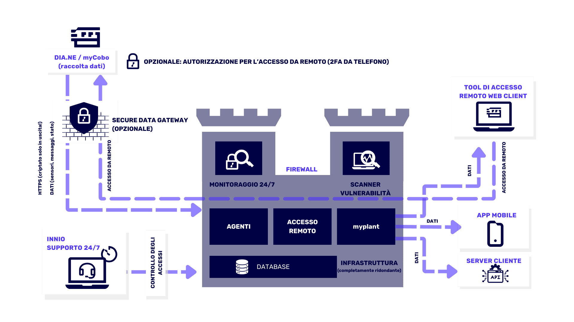 L'accesso alla piattaforma myplant è controllato rigidamente e gestito da amministratori o personale dell'assistenza tecnica scelto.